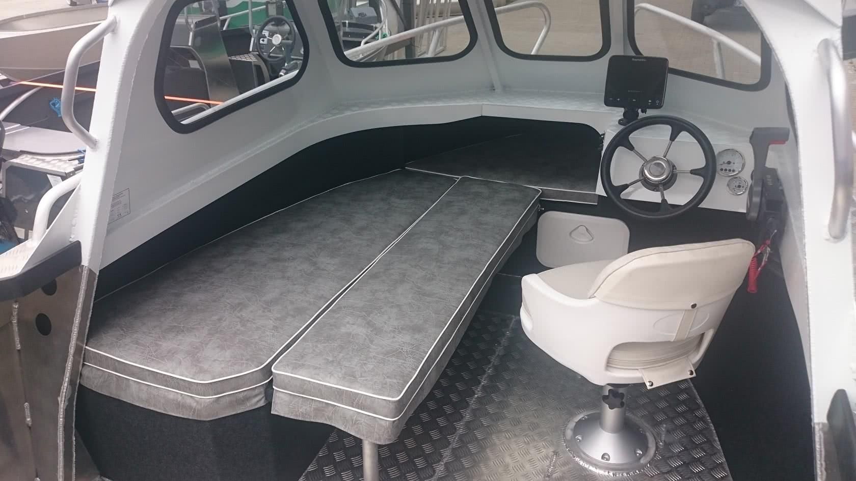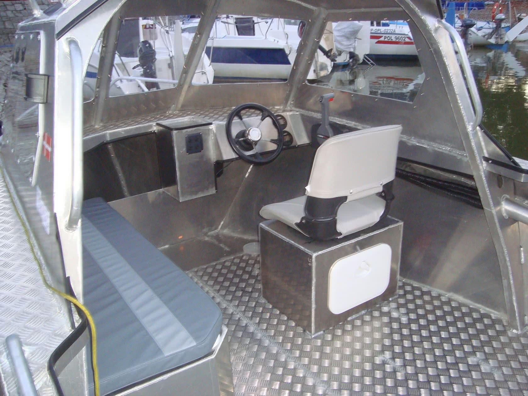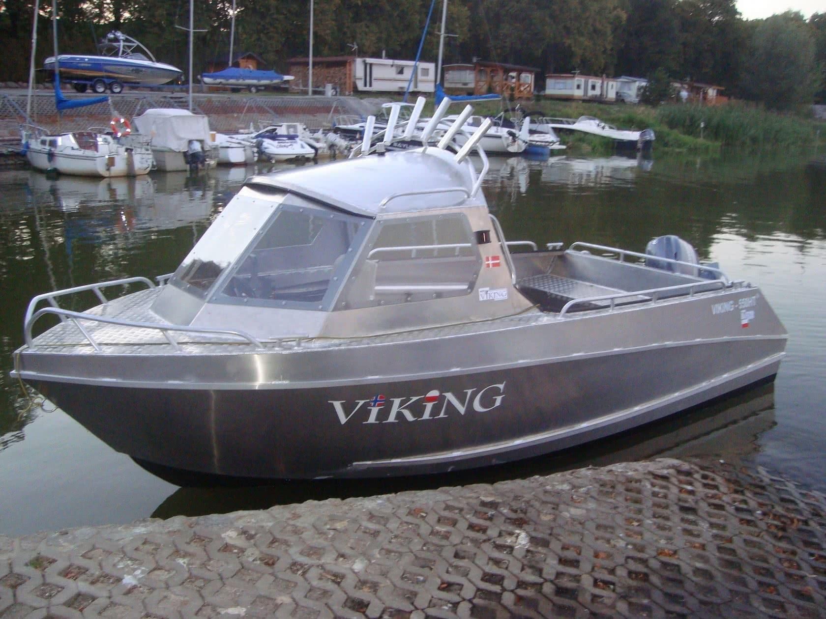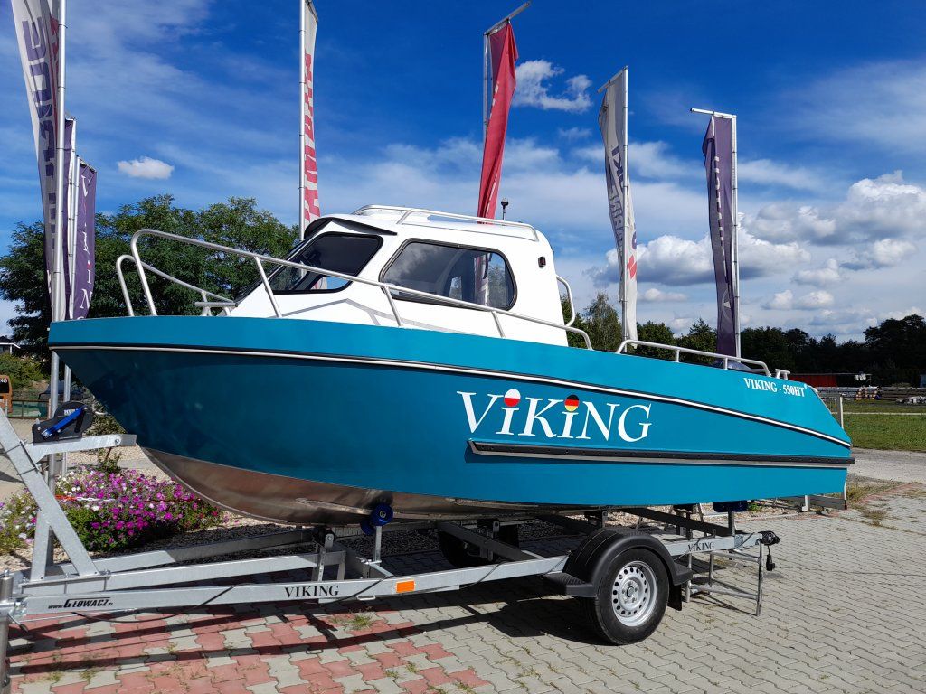 Wenn Sie sich für die Viking 550 entscheiden, können Sie sicher sein, dass Sie ein Boot kaufen, das sich perfekt für Küstengewässer eignet, sowohl zum Tiefenangeln als auch zum Schleppangeln. Seit Jahren wird dieser Schiffstyp von Anglern in den anspruchsvollen Küstengewässern Skandinaviens erfolgreich eingesetzt. Die Liste des möglichen Zubehörs ist hier nur durch die Ladekapazität des Schiffes begrenzt. Wir machten uns diese Tatsache zunutze und bereiteten Versionen des Viking V-550CR mit einem zentralen Steuerhaus mit Aluminiumdach und des V-550HT mit einer offenen Aluminiumkabine vor.